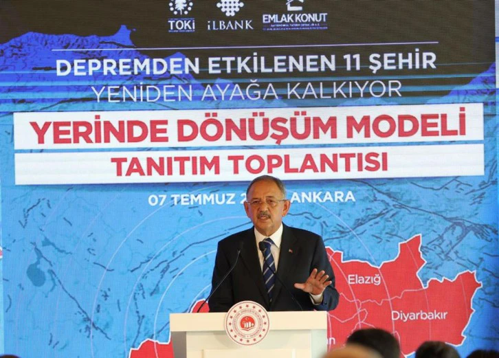 في إشارة إلى بدء حقبة جديدة في ترميم وبناء منطقة الزلزال ، صرح الوزير Mehmet Özhaseki أنه سيتم إعادة 11 مدينة إلى الحياة من خلال مشروع `` التحول في الموقع '' الذي سيبدأ في 17 تموز. وأكد الوزير Özhaseki أنهم سينفذون مشروعًا جديدًا يلبي توقعات المواطنين الذين يرغبون في تحويل منازلهم في الموقع تحت إشراف الوزارة ، وقال: "في هذا النموذج ، هناك دعم لمواطنينا الذين يرغبون في تحويل منازل في الموقع. في هذا المشروع ، هناك منح دعم وقروض سداد سهلة لتحويل المساكن وأماكن العمل. من خلال مشروع التحول في الموقع ، نحافظ على ثقافة الأحياء القديمة في منطقة الزلزال ، وننشط مدننا الإحدى عشرة بساحاتها وأسواقها وهياكلها القديمة وصورها التاريخية وقيمها. يبدأ عهد جديد في أعمال الترميم والبناء ".