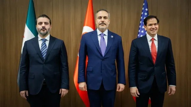 وكان بحث وزير الخارجية والمغتربين "أسعد الشيباني" في مدينة أنطاليا التركية مع وزير خارجية الولايات المتحدة الأمريكية السيد ماركو روبيو، بحضور وزير خارجية تركيا السيد هاكان فيدان، تفاصيل رفع العقوبات الأمريكية عن سوريا، وتحسين العلاقات بين دمشق وواشنطن، وسبل بناء علاقة استراتيجية.