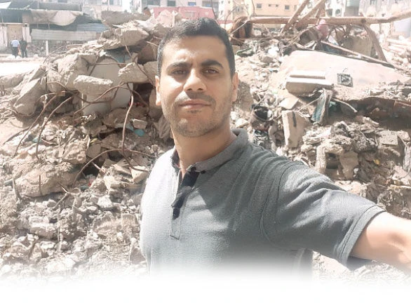 "تم تدمير منزلي بالكامل. فقدت العديد من أقاربي، وشهدت آلاف الوفيات. الحفاظ على الصحة النفسية هنا أصعب من النجاة. لم يُدمّروا منازلنا فقط، بل أحلامنا ومستقبلنا أيضاً. لا كهرباء، لا إنترنت، ولا مياه نظيفة. تخلينا عن أنفسنا، ولكن مشاهدة الأطفال الصغار يموتون من الجوع هو نوع آخر من العذاب. أعيش على أمل أن أرى أطفالي الثلاثة (كريم، أمير، وعبد الرحمن) مجددًا. إنهم في تركيا، ويسألون أمهم يوميًا: ‘متى سيعود أبي؟’ وزوجتي مها لا تملك جوابًا".