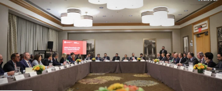 التقى رئيس الجمهورية العربية السورية أحمد الشرع نخبة من رجال الأعمال والمستثمرين وممثلي كبرى الشركات الأمريكية والعالمية، في جلسة الطاولة المستديرة التي نظمتها غرفة التجارة الأمريكية، على هامش أعمال الدورة الثمانين للجمعية العامة للأمم المتحدة في نيويورك.