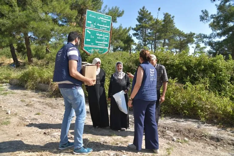 وتشير مصادر تابعة لنظام الأسد أن منظمة الإسعاف الأولي الدولية (PUI) تعمل على مشاريع الترميم بتمويل من المفوضية السامية لشؤون اللاجئين، ويذكر أن المنظمة تعمل في مناطق سيطرة النظام بترخيص من وزارة الخارجية لدى نظام الأسد.