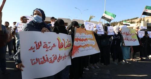 من جانبه أكد المحتج حمزة جوجه، أنهم يرفضون أي مساعدات مقدمة عبر النظام السوري.