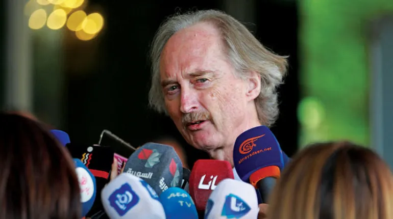 وأشار المبعوث الأممي إلى أنّ المسار السياسي لم يحقق السلام للشعب السوري، وأن الأمم المتحدة ستعمل على تأمين المساعدات الإنسانية للنازحين في مناطق النظام وخارجه.