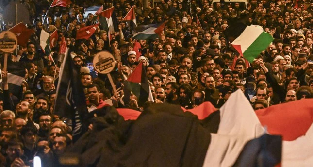 تظاهر مئات الأتراك أمام السفارة الإسرائيلية في العاصمة أنقرة وقنصليتها بإسطنبول تنديداً بقصف مستشفى الأهلي المعمداني في قطاع غزة.