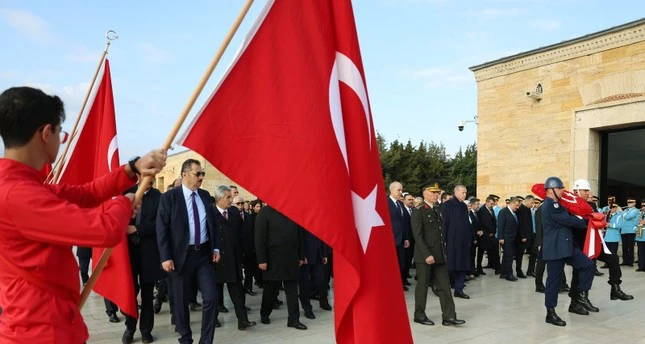 ووقف المشاركون أمام ضريح أتاتورك دقيقة صمت في تمام الساعة 09:05، وهو التوقيت الذي توفي فيه مؤسس الجمهورية، قبل 85 عاما.