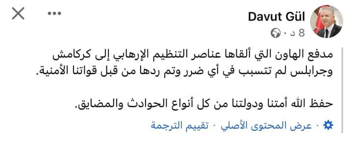 حسب الأخبار الواردة سقط 4 قذائق على مدينة قرقاميش التابعة لولاية غازي عنتاب مصدرها المناطق التي تسيطر عليها التنظيمPKK/PYD في الطرف السوري والقذائف سقطت على أراضي خالية .