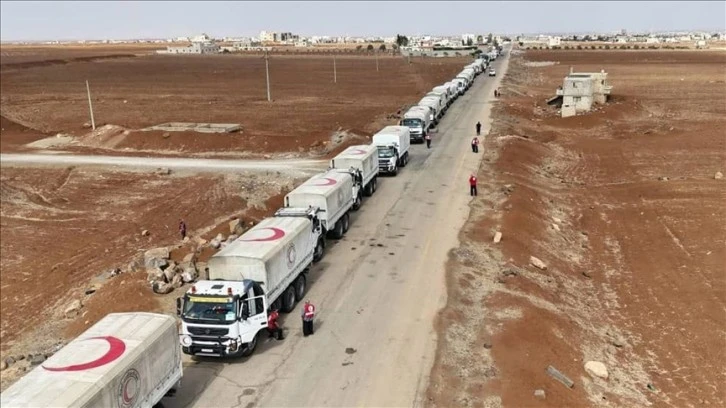 وأكدت أن القافلة "مكوّنة من 47 شاحنة، تحمل موادا غذائية وإغاثية".