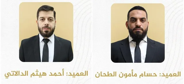 أصدرت وزارة الداخلية في الحكومة السورية قرارات بتعيين العميد "حسام مأمون الطحان" قائداً للأمن الداخلي في محافظة السويداء، والعميد "أحمد هيثم الدالاتي"، قائداً للأمن الداخلي في محافظة ريف دمشق، في خطوة تأتي ضمن إعادة توزيع القيادات الأمنية بما يتوافق مع متطلبات المرحلة الراهنة وتوجهات الوزارة.