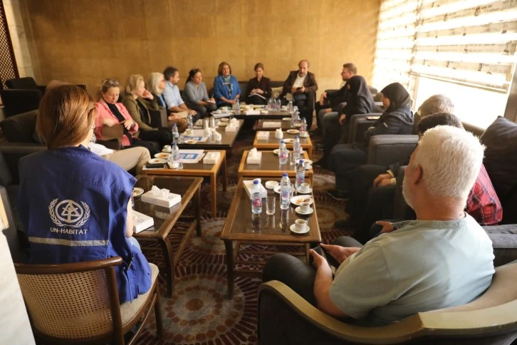 في حلب، التقى الوفد بالمجتمع المحلي المشارك في إعداد خطة التعافي الحضري وتصميم وتنفيذ مشاريع التعافي القائمة على المناطق بشكل تشاركي، مثل المساحات العامة، محطة الحافلات وشبكات الصرف الصحي، بهدف تعزيز التعافي الحضري، والقدرة على الصمود، والتماسك الاجتماعي.