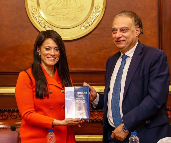 أهدت الدكتورة رانيا المشاط، وزيرة التخطيط والتنمية الاقتصادية والتعاون الدولي، أعضاء لجنة الشئون الخارجية بمجلس الشيوخ المصرى، نسخة من كتابها «مبادئ الدبلوماسية الاقتصادية لتعزيز التعاون الدولي والتمويل الإنمائي»، الذي أطلقته في عام 2021، لتوثيق تجربة مصر في مجال التعاون الدولي والتمويل الإنمائي.