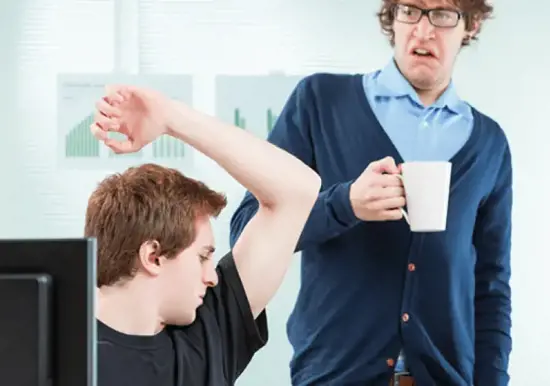 العرق ليس له رائحة في أغلب الأحيان، لكن الغدد العرقية في منطقة الإبط والفخذ غالبا ما تفرز مركبات ينتج عنها رائحة الجسم.